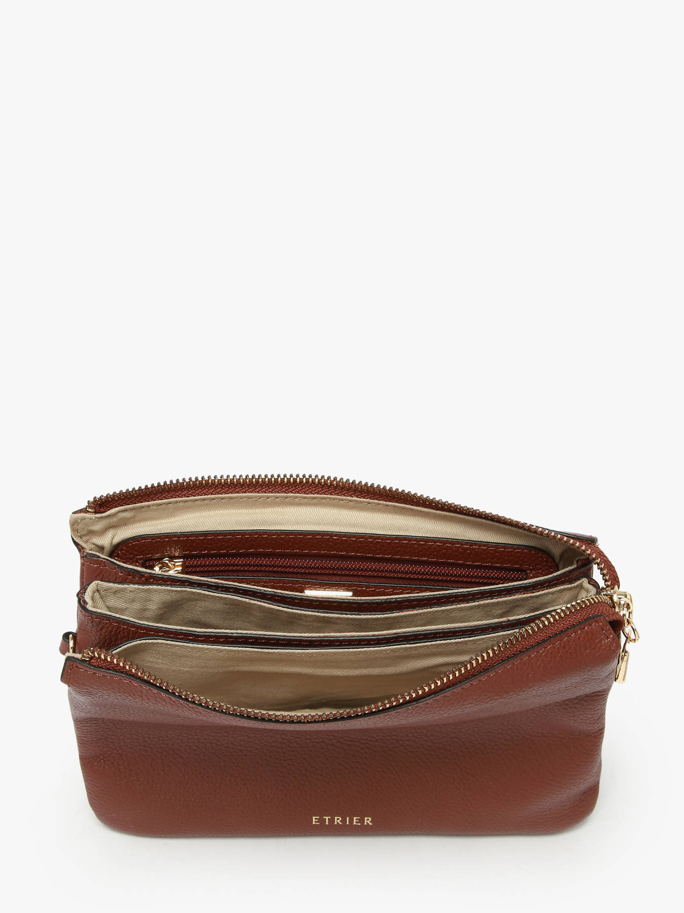 Le sac bandoulière ETRIER de la ligne TRADITION s'habille d'accessoires métal doré pour un look sophistiqué. Fabriqué en cuir de vachette, il se ferme par une fermeture éclair. La bandoulière en cuir, ajustable et amovible, offre des options de porté polyvalentes : à l'épaule ou en bandoulière. L'intérieur spacieux comprend trois compartiments avec une poche zippée, le tout doublé en coton pour une touche luxueuse. Un accessoire élégant pour compléter vos tenues avec style.